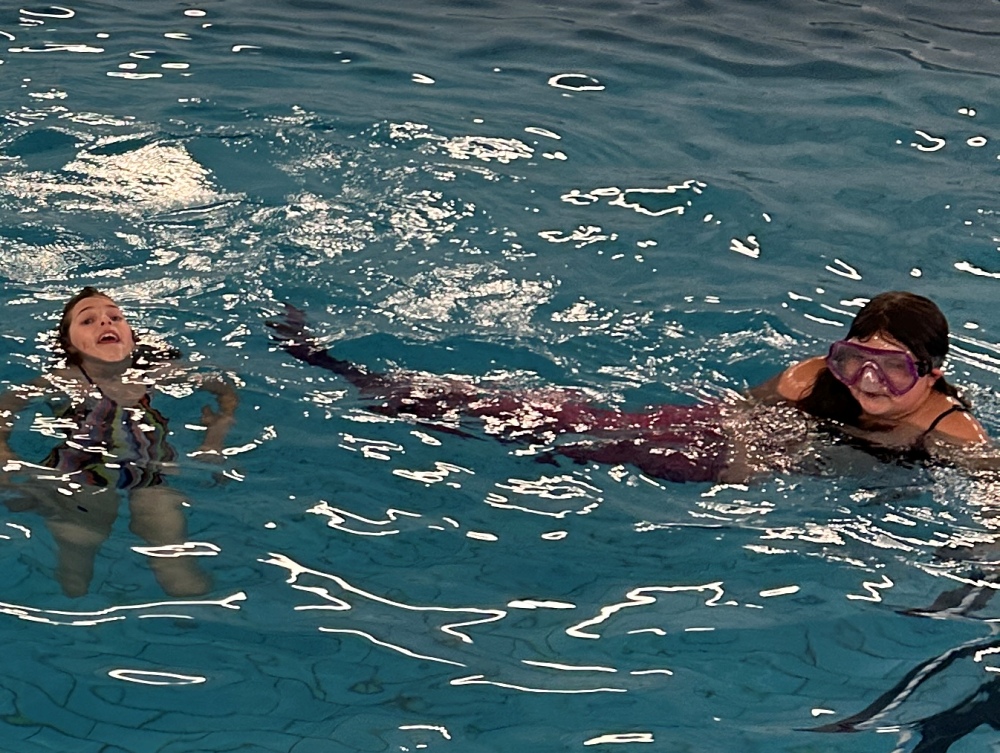 returned and she and my friend and I went swimming in the apartment block pool before we went home."