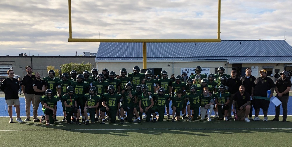 "James (#7) and his 9-man CMMC Junior Varsity football team."