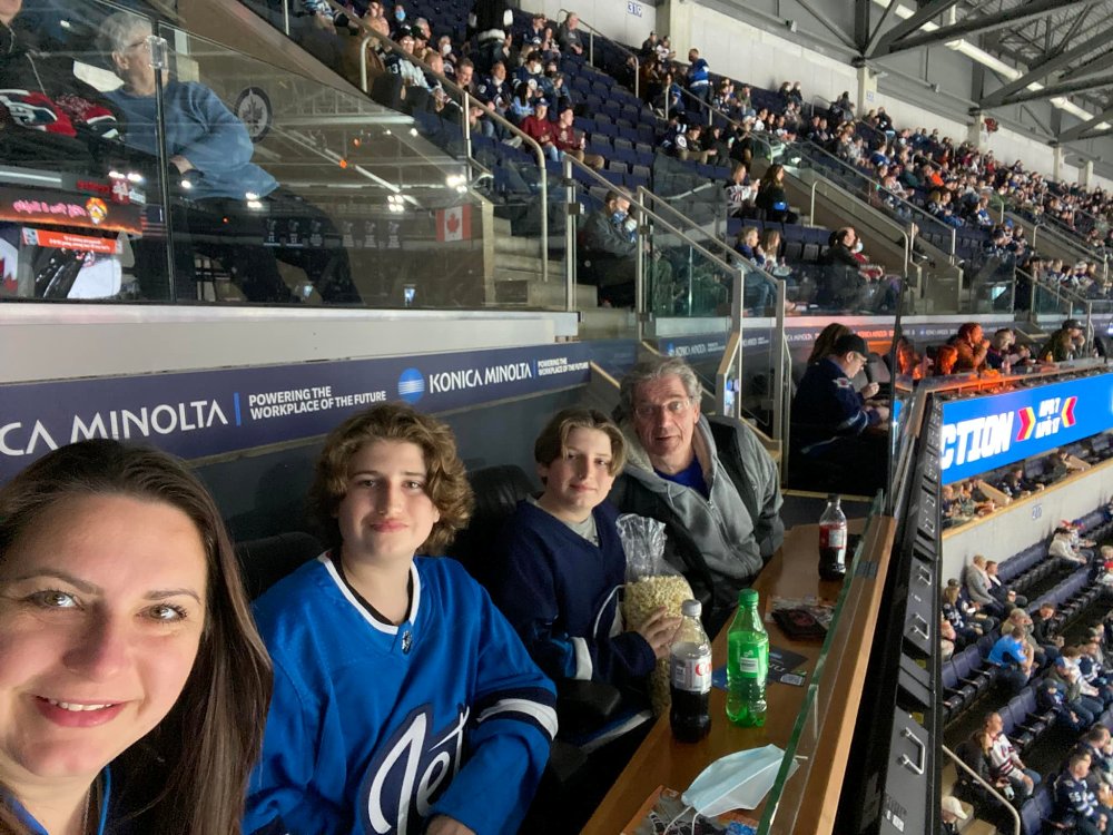 that we could get Grandpa Bill and then go to the Jets-Kings hockey game at 6:00 pm.