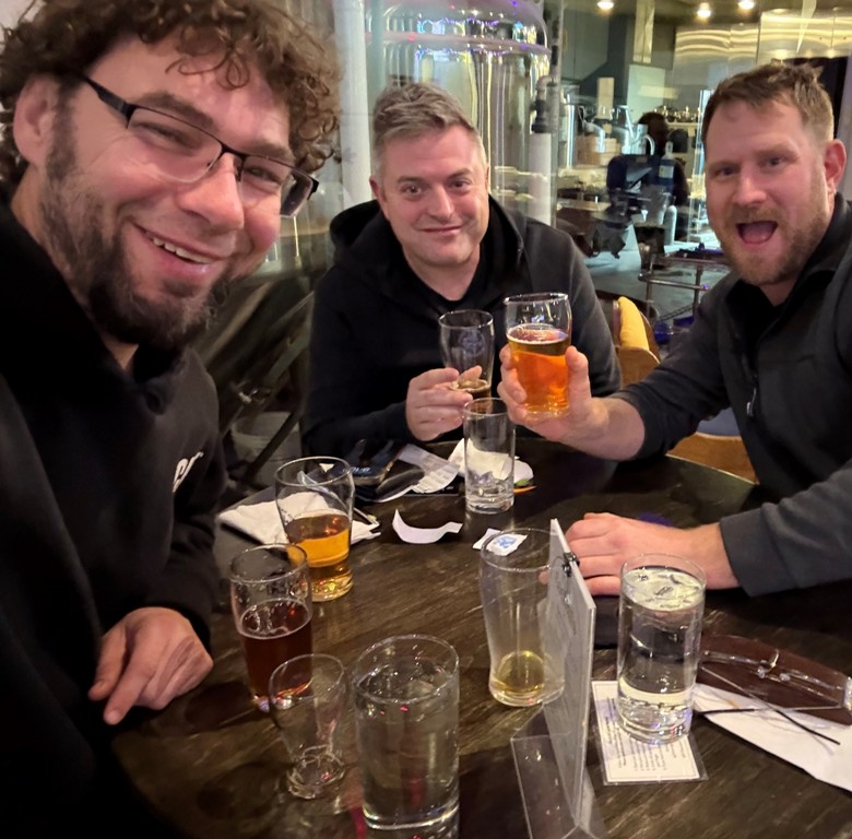 "Just my Dad enjoying refreshments with Brett and Graham before their hockey game later that evening."