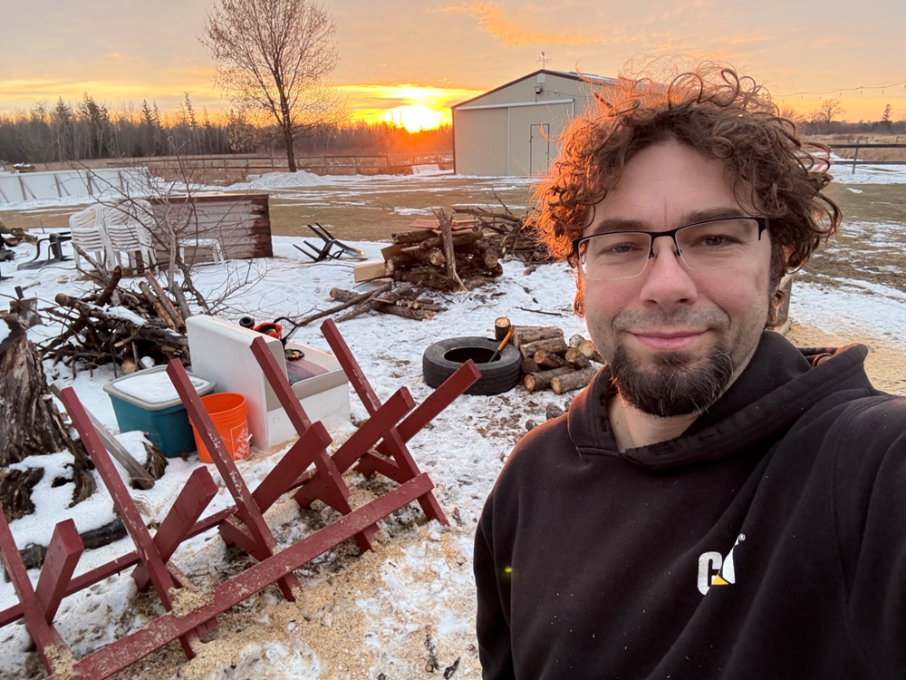"Just my Dad cutting wood on a beautiful Saturday afternoon in December!"