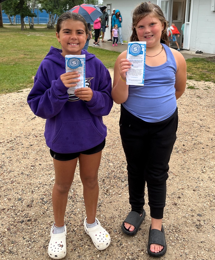 "Just me and one of my swimming lesson partners receiving our 'Swimmer 6' merit badges on August 8th."