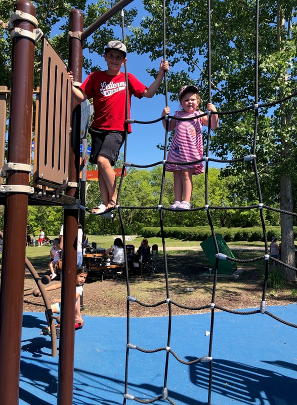 either watching the lacrosse games or enjoying the structures in the playgrounds."