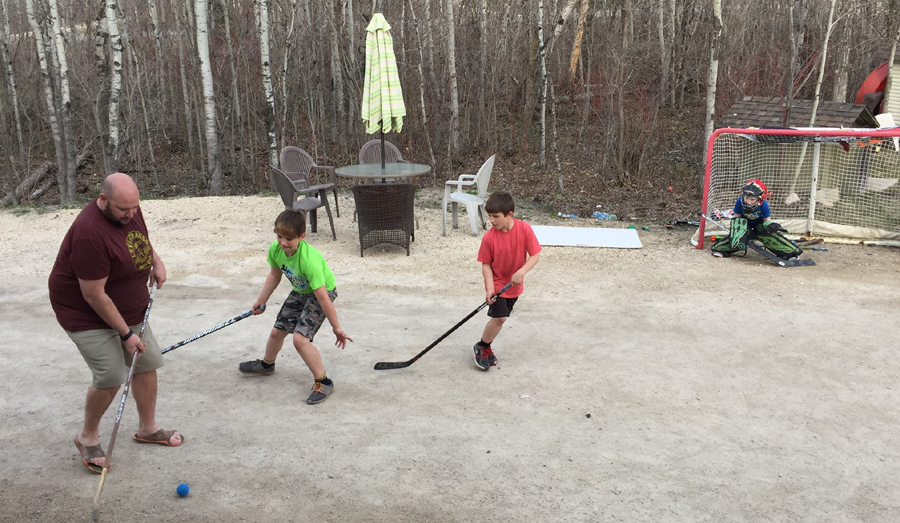 "Just me and my brothers playing hockey with our Dad."
