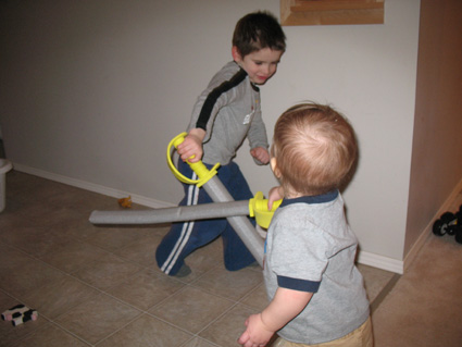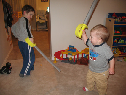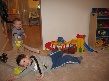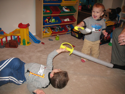 "Just me and my brother having a 'swordfight' in our livingroom."