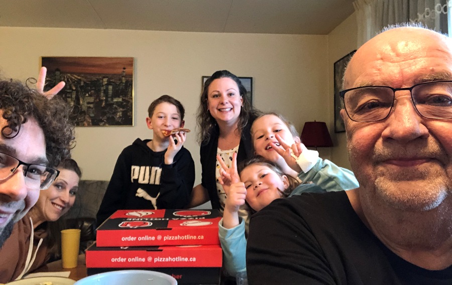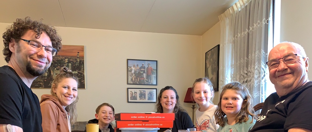 "On March 29th, Dad hosted a pizza, coleslaw and ice cream supper for Luke, Carla, Kain, Keona, Leah and Allie."