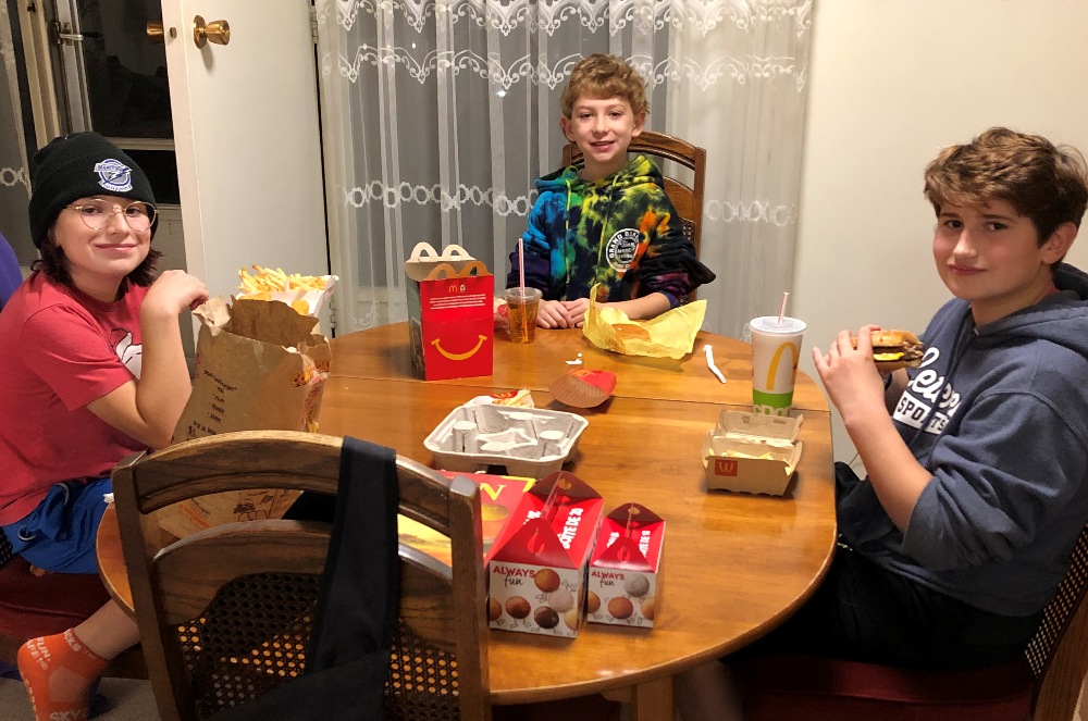 Wayne's apartment. After getting our favourite suppers from McDonald's around 5:30 pm,