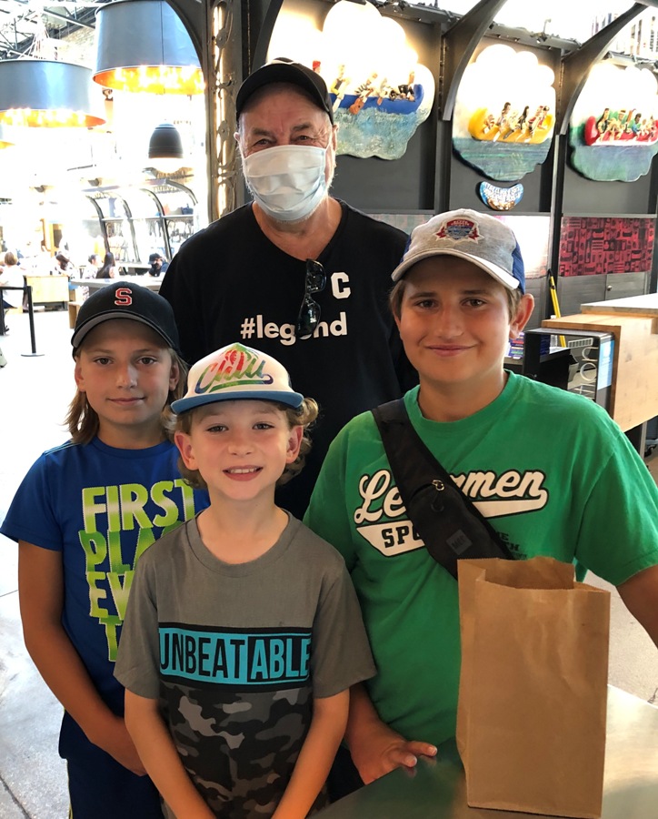 Grandpa Wayne getting/enjoying mini-donuts at