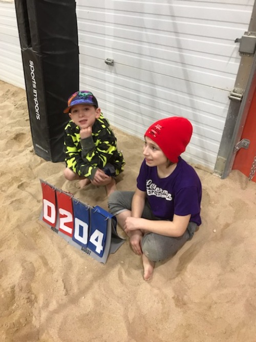 "Just me and Kain having fun keeping score at a beach-volleyball game!"