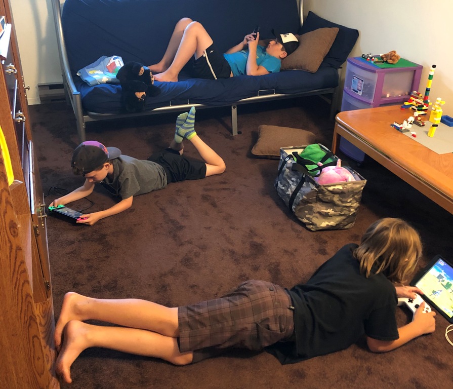 had a sleepover at our Grandpa Wayne's apartment! We mostly played games together on our devices...but