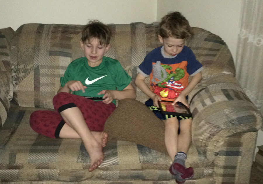 "At 6:30 in the morning Grandpa found Kain and me on the couch, in the dark, playing Minecraft on