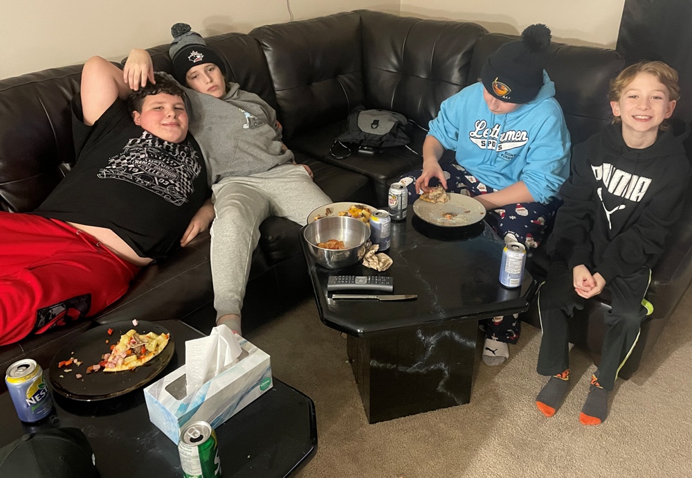 Uncle Jeremiah's apartment for a sleepover with our cousins Gage and Kash.