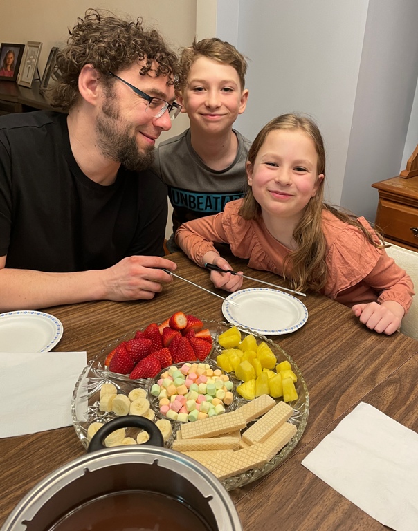 roasted potatoes, mushrooms), then I opend my gifts before enjoying a chocolate fondu for dessert!"
