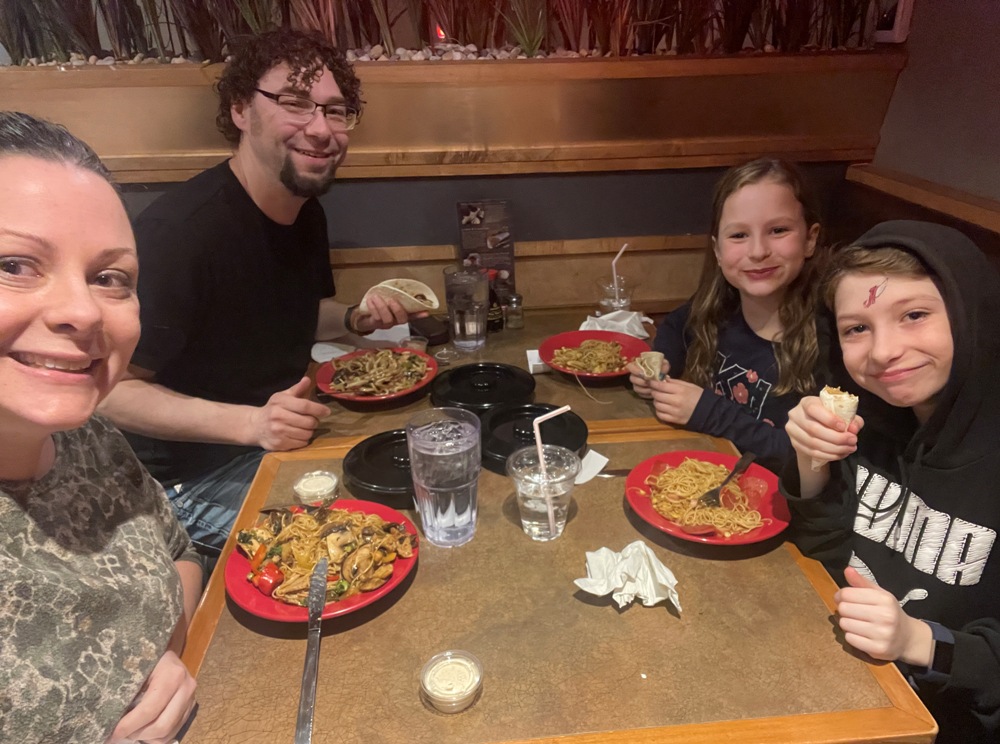 by going to Mongo's Grill to have supper, then back home for left-over ice-cream