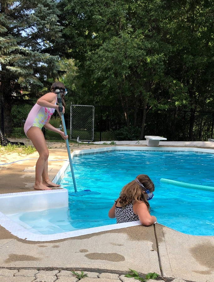 "Just me and my cousin Allie having fun at our Auntie Sharla's pool!"