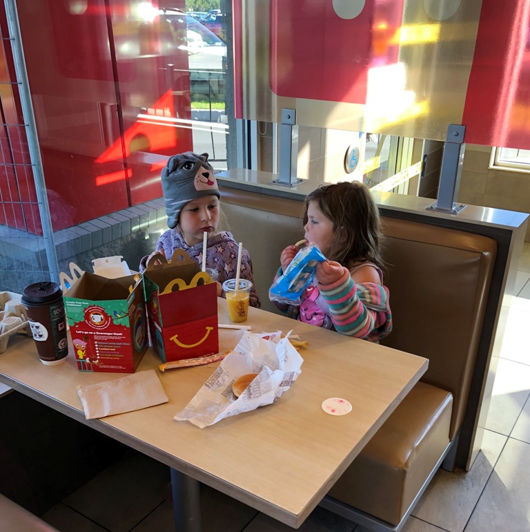 at our daycare just before 5:00 pm and took us to McDonald's for supper.