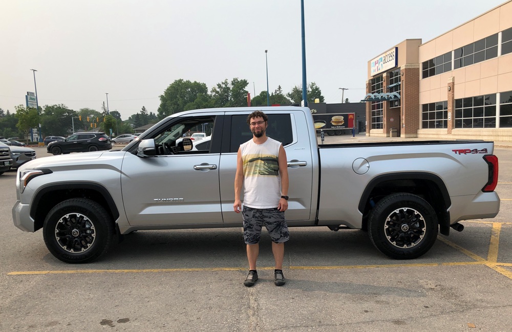"Grandpa Wayne took this picture of my Dad and our new truck that we got in July!"