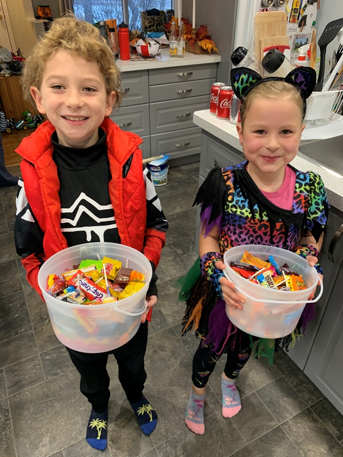 "Just me and Kain posing for a picture with the candy that we collected on Halloween."