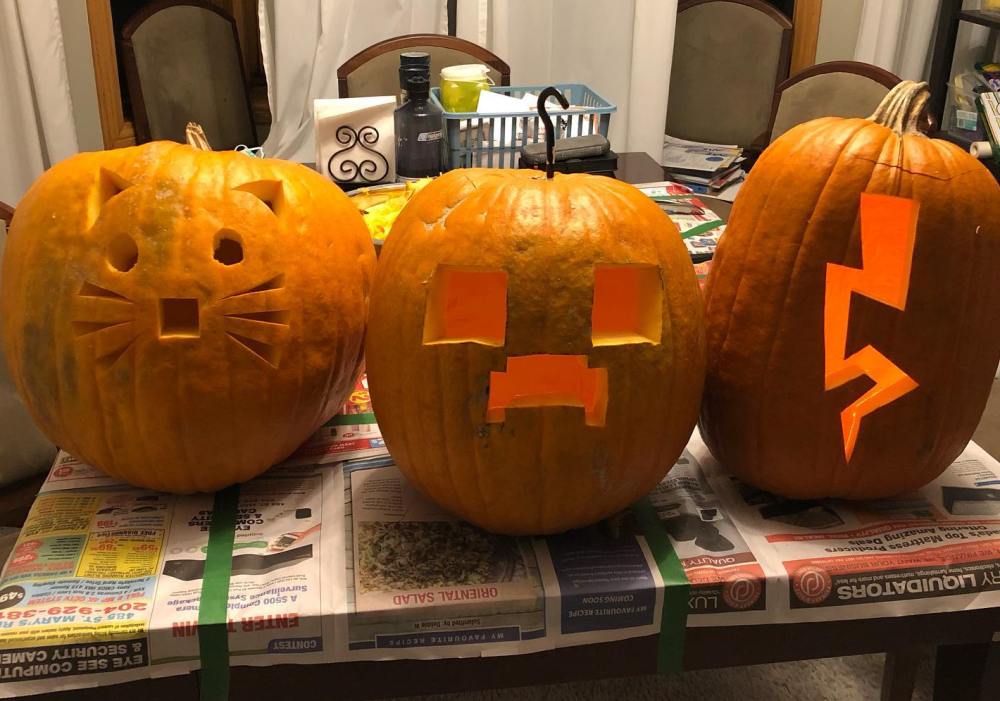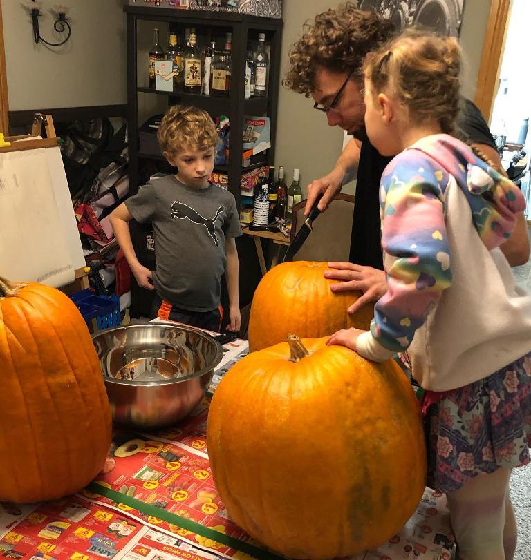 "Just me, Kain and our Dad carving 'jack-o-lanterns' for Halloween."