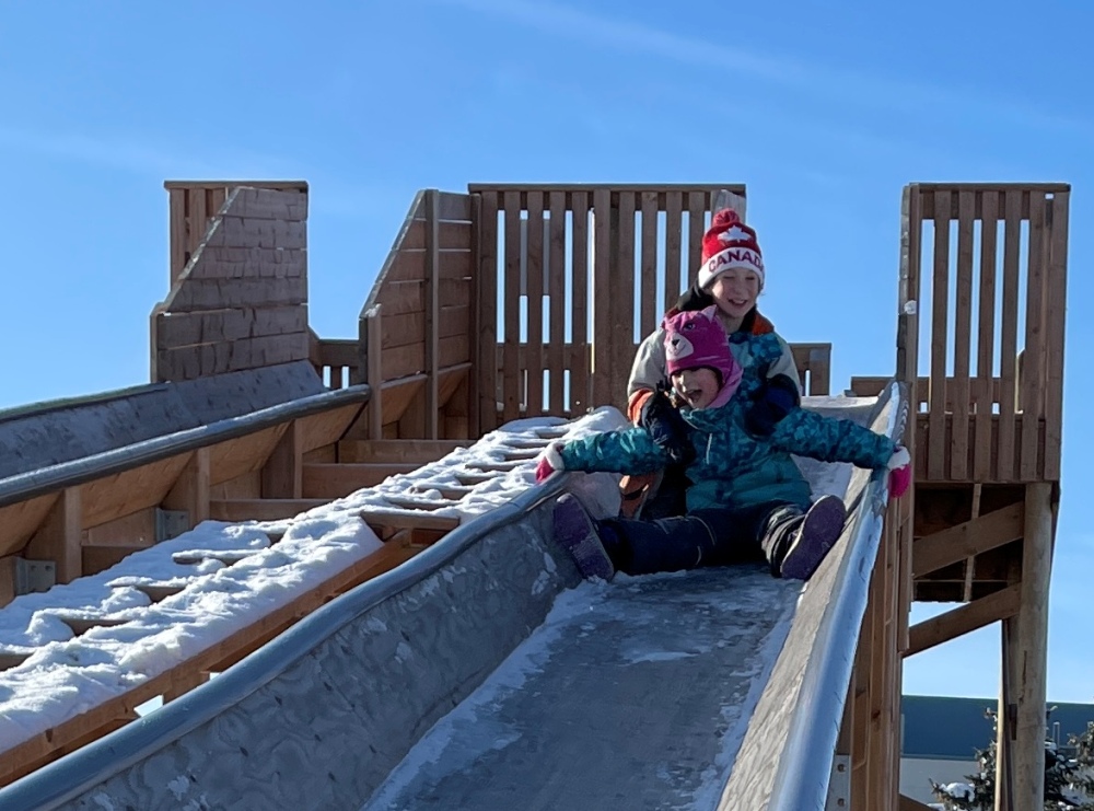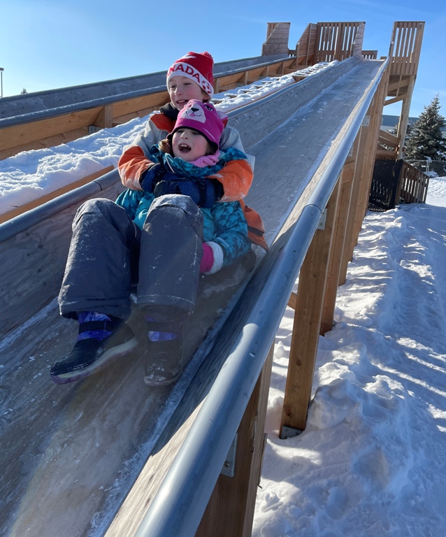 "Just me and Kain having a fun afternoon tobogganing after church on Sunday, January 22nd."
