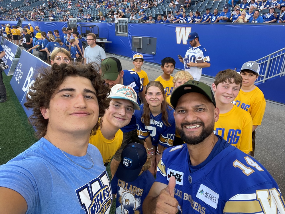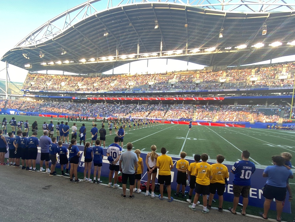 "James and his flag football team played another team prior to the B.C. Lions vs Winnipeg Blue