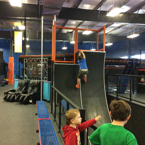 so their Grandpa Wayne and their Grandpa Bill took them to A+W for lunch and then to Sky Zone. While