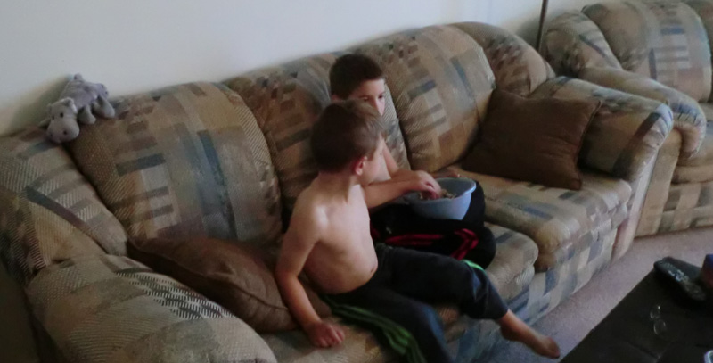 "After swimming Will and Charlie watched T.V. and played some games with their Grandpa before going home."