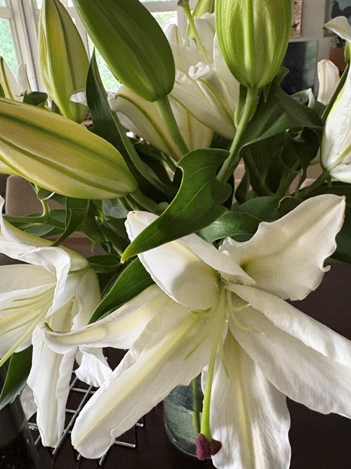 ("Dad bought the lilies for Mom.")